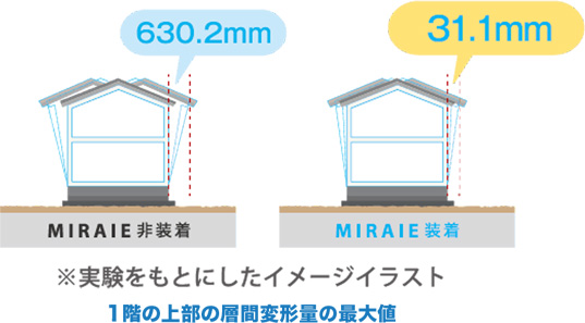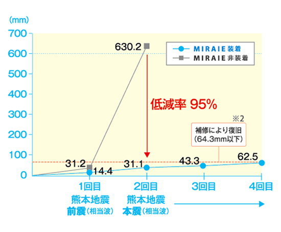 ※1:2017年1月京都大学防災研究所でのMIRAIE軸組を使用した実大実験の結果による。