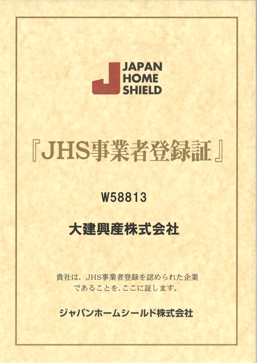 大建興産株式会社はジャパンホームシールド(JHS)に事業者登録しております。